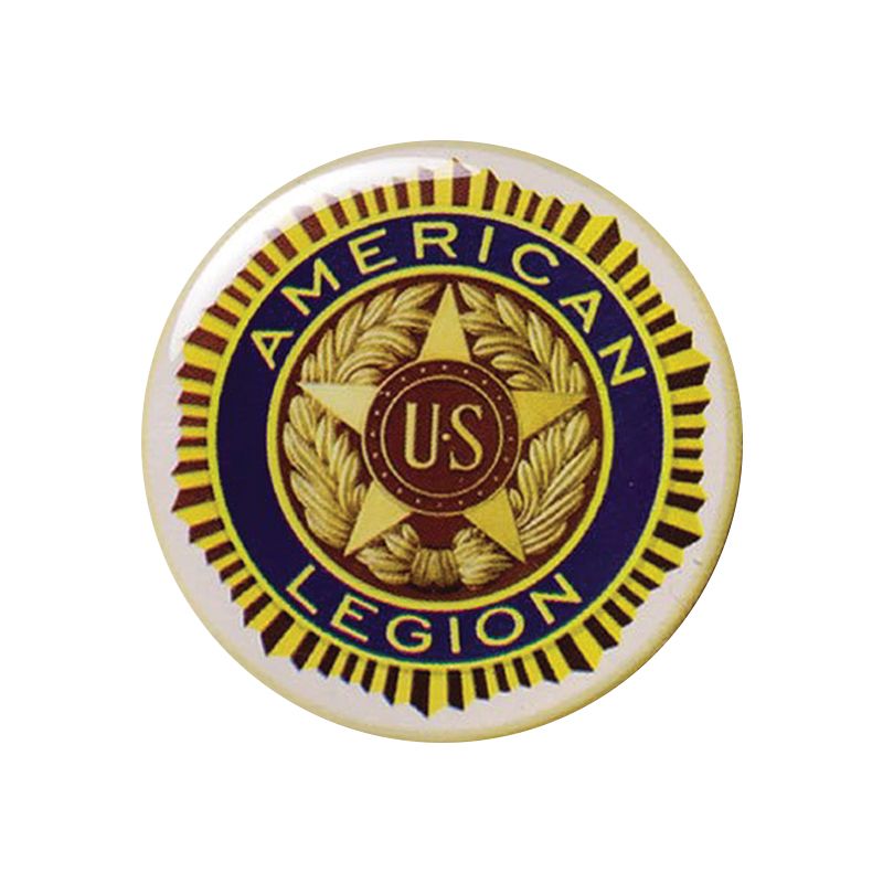 2 inch American Legion mylar insert with clear epoxy dome and adhesive back.