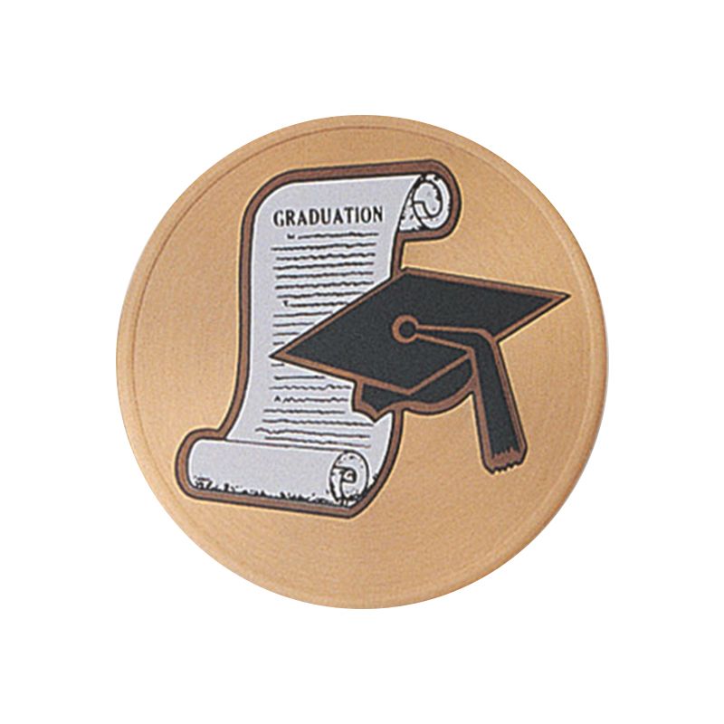 2 Inch Round Raised and Color Printed Graduation Cap and Scroll Aluminum Metal Medallion Decal Disc-Peel and Stick Back