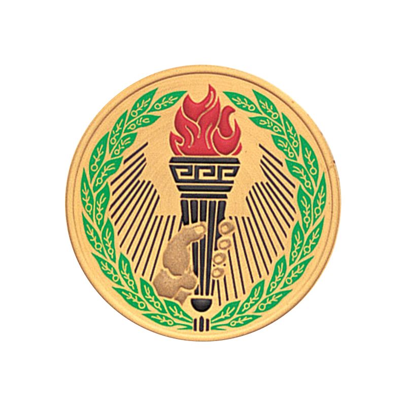 2 Inch Round Raised and Color Printed Victory Torch Aluminum Metal Medallion Decal Disc-Peel and Stick Back