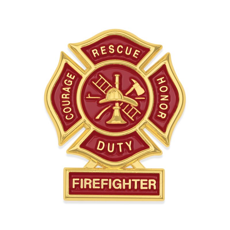 - 1-3/4 Inch Firefighter Maltese cross Fire shield lapel pin.