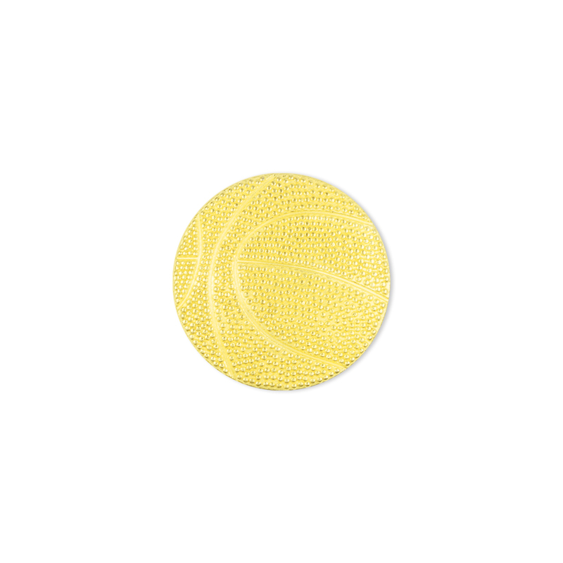 1 Inch Gold Basketball Chenille Pin. The cast gold pin has extra long nail, 7/16 inch with clutch so it can be attached to school letter.