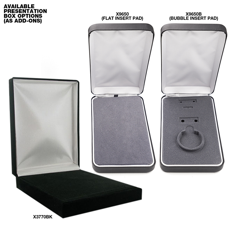 2) 4-1/4" x 7" x 1" Black leatherette deluxe hinged box with grey bubble velour insert - X9650B