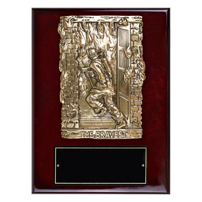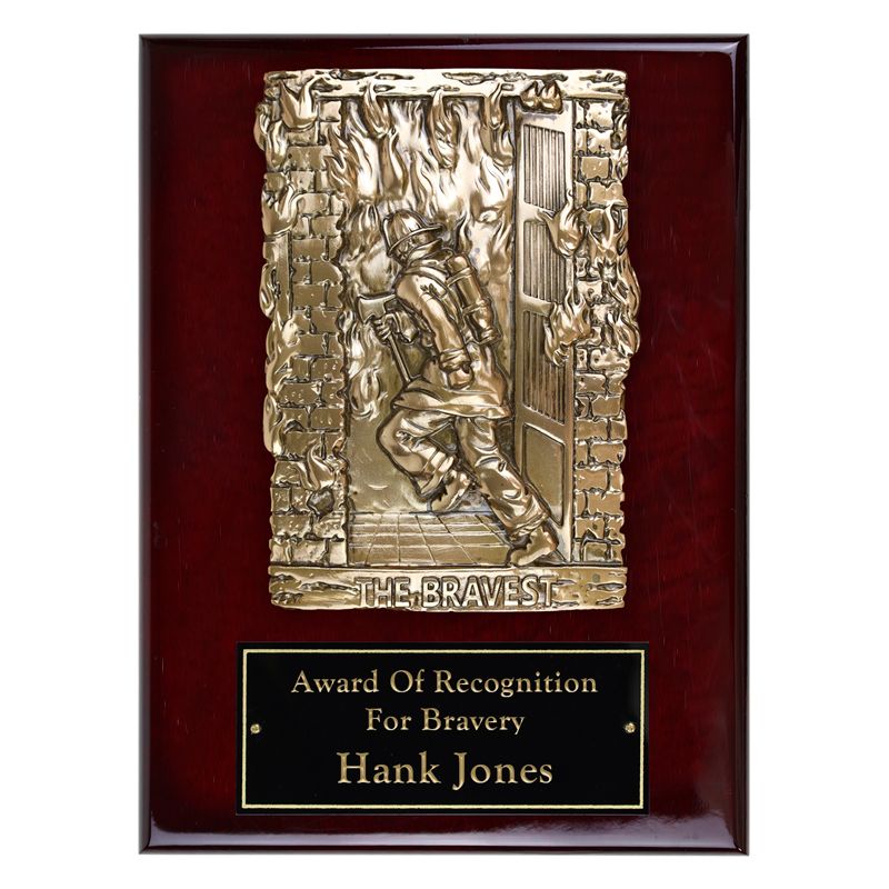 9 x 12 Inch Rosewood Piano Finish Fire Fighter Plaque With Electroplated Brass Plaque Mount And Black Screened Plate